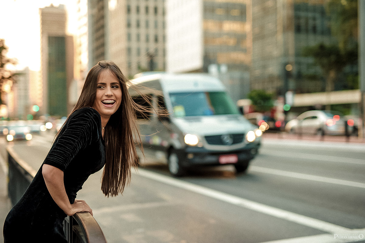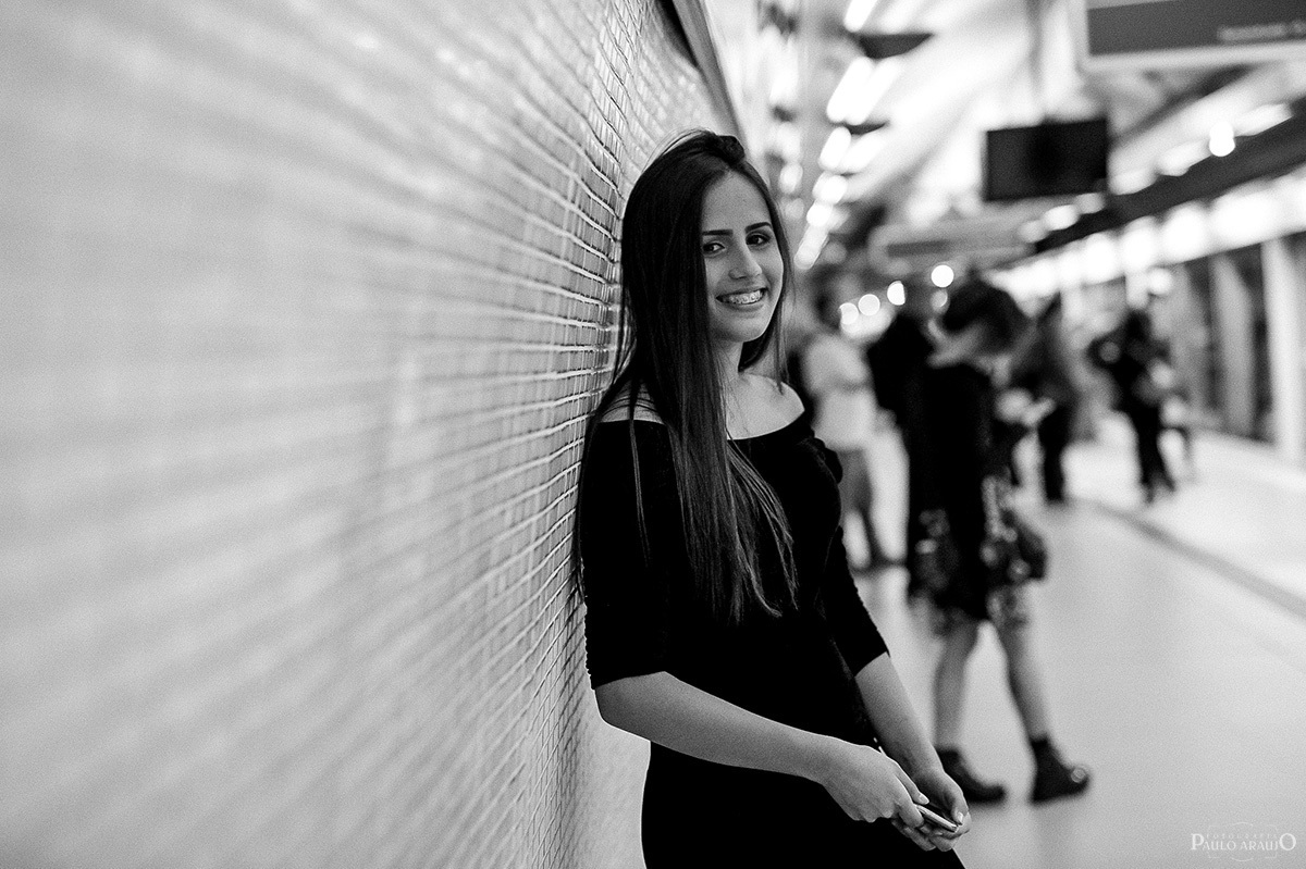 Começamos a fotografar no metrô, e logo chegamos na Av Paulista, que na minha opinião é um local ótimo para ensaio de debutante.